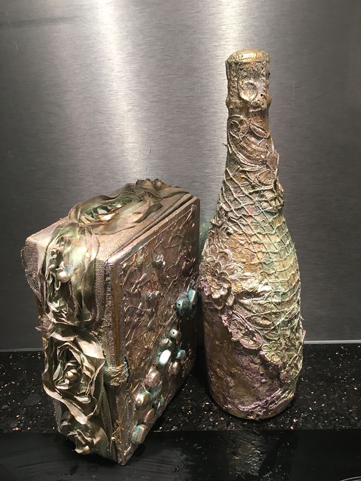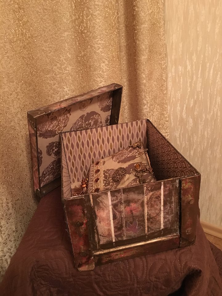 В качестве декора использованы также различные пасты, медиумы, лепнина/ гипс, что придает изделию оригинальный вид.