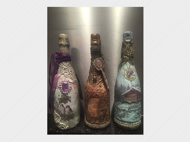 Декор бутылок на любой случай и любую заданную тему заказчиком: Рождество, Новый Год, Юбилей, День рождения, Свадьба, Романтическое свидание и прочее...
