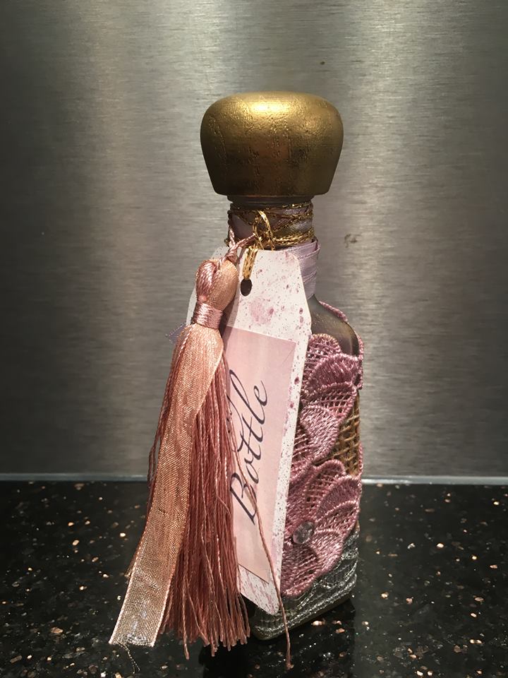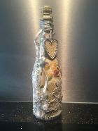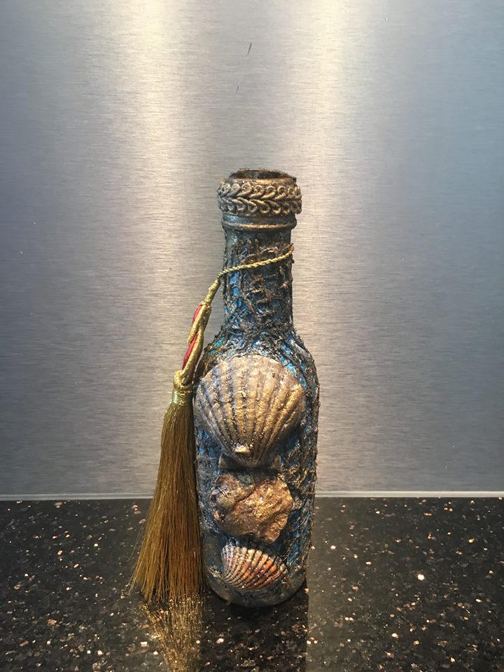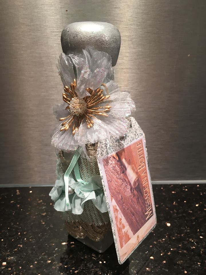 Изделие выполнено в стиле шебби-шик, микс-медиа, из стекла с использованием декоративных паст, медиумов с последующим обжигом в печи; снабжено пробкой и карточкой "Message in a Bottle".