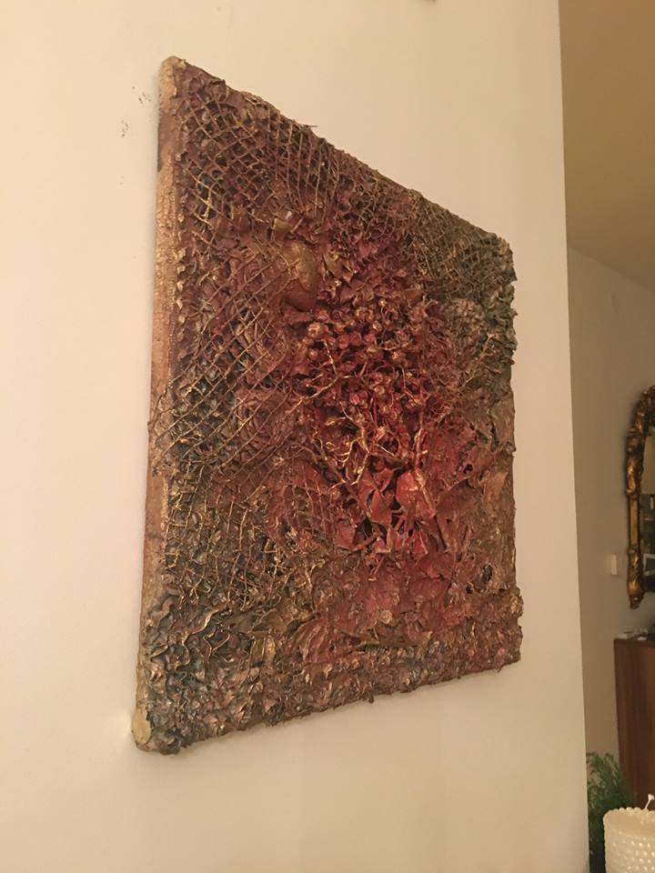 Объемная картина-панно выполнена на холсте в смешанной технике: микс-медиа, эмболяж, терра (использование природных материалов, доставленных с берегов Эгейского моря, Халкидики, Греция).