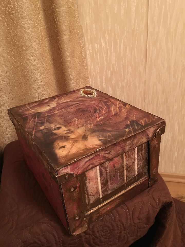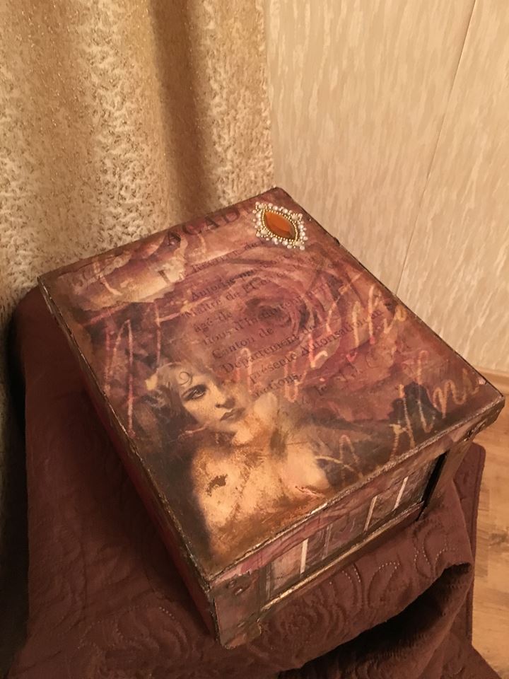Декорировано в стиле микс-медиа, в технике декупаж.