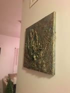 Полностью ручная работа. Ручное окрашивание с использованием акрила, структурной пасты. Работа смотрится необычно и стильно. Картина полностью готова к размещению, багетного оформления не требует - боковые стороны окрашены.